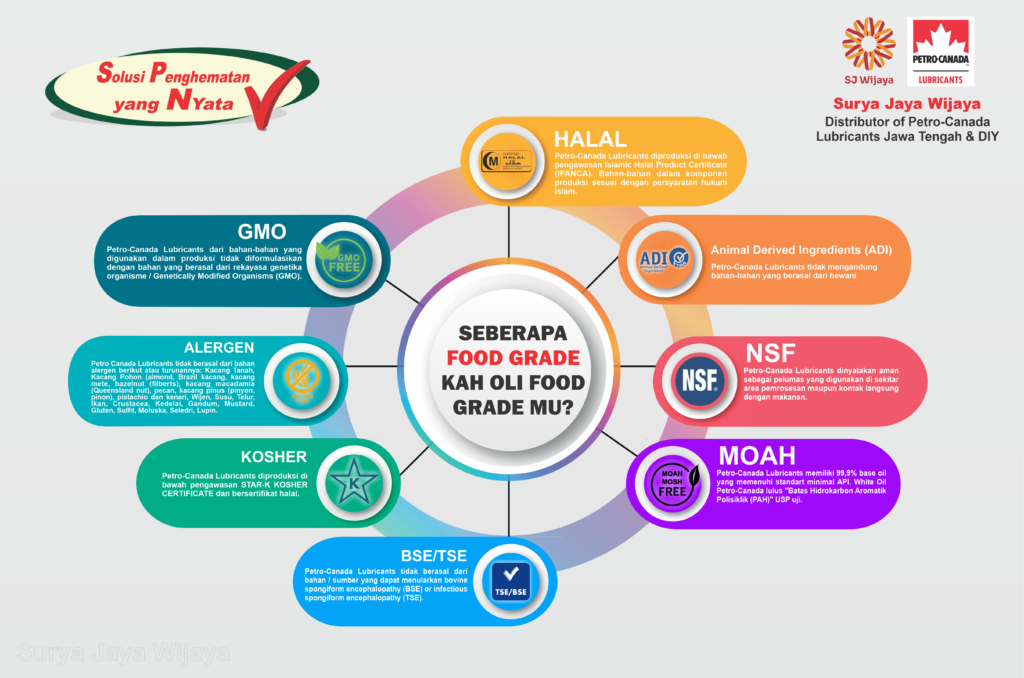Sebagai Premium Lubricants Petro-Canada memberikan sertifikat untuk kebutuhan audit perusahaan Farmasi, Food Industri dan lain-lain