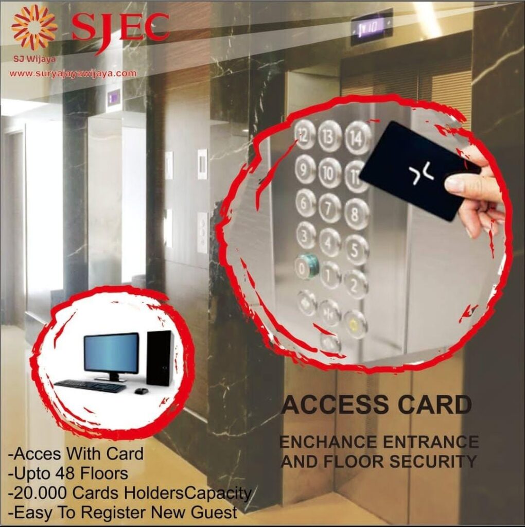 Surya Jaya Wijaya memberikan solusi untuk akses keamanan lift maupun multi pintu (door zone) di gedung perkantoran, hotel maupun rumah pribadi melalui sistem Access Control dan Zone Management yang dapat terintegrasi langsung dengan lift di tempat Anda. Pengontrol lantai dioperasikan secara bersamaan dengan sistem lift yang hanya dapat diakses melalui kartu akses universal dengan keamanan berteknologi tinggi, serta manajemen perangkat lunak sehingga aman dalam operasional namun mudah dalam penggunaanya. Kami juga menyediakan sistem biometrik, kontrol akses sistem lift stand alone (komputer off line) ataupun jaringan (komputer on line), serta manajemen akses pintu ruangan yang dapat terintegrasi menjadi satu sistem otomatis gedung. Hubungi Kami untuk meningkatkan keamanan dan kenyamanan gedung Anda.